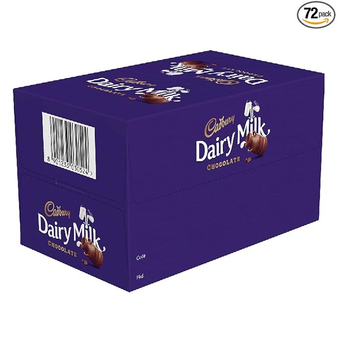 This is the “Big Brother” version of the 72-pack! The Cadbury Dairy Milk Pack of 56 featuring the 12.1g – 12.2g bars is the standard bulk option for the ₹10 size. While the 72-pack was perfect for tiny treats, this pack is meant for people who want a “proper” piece of chocolate in every serving.